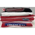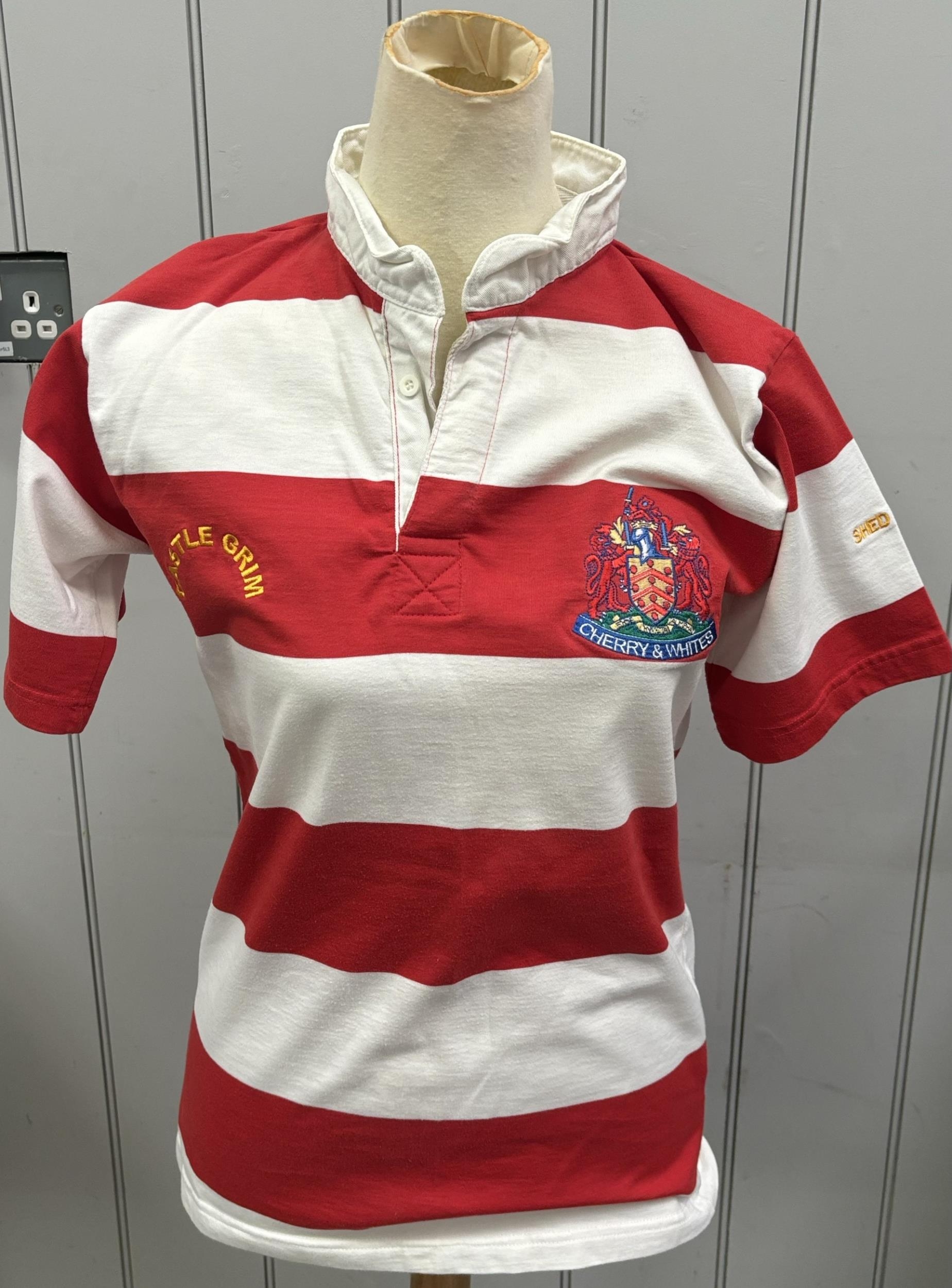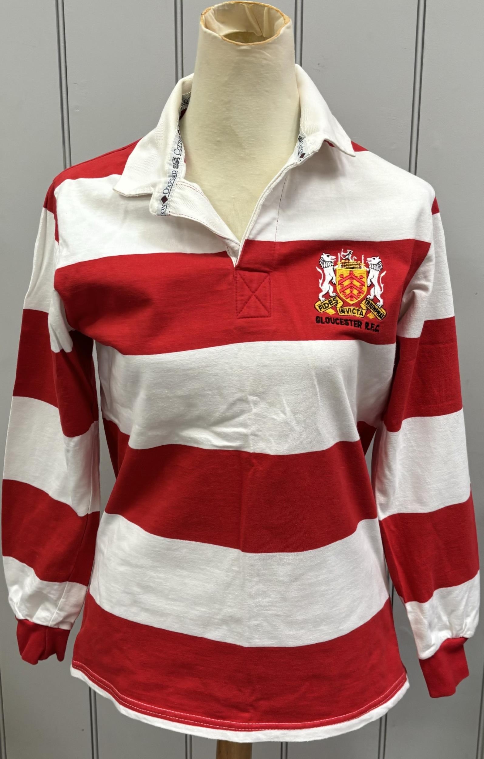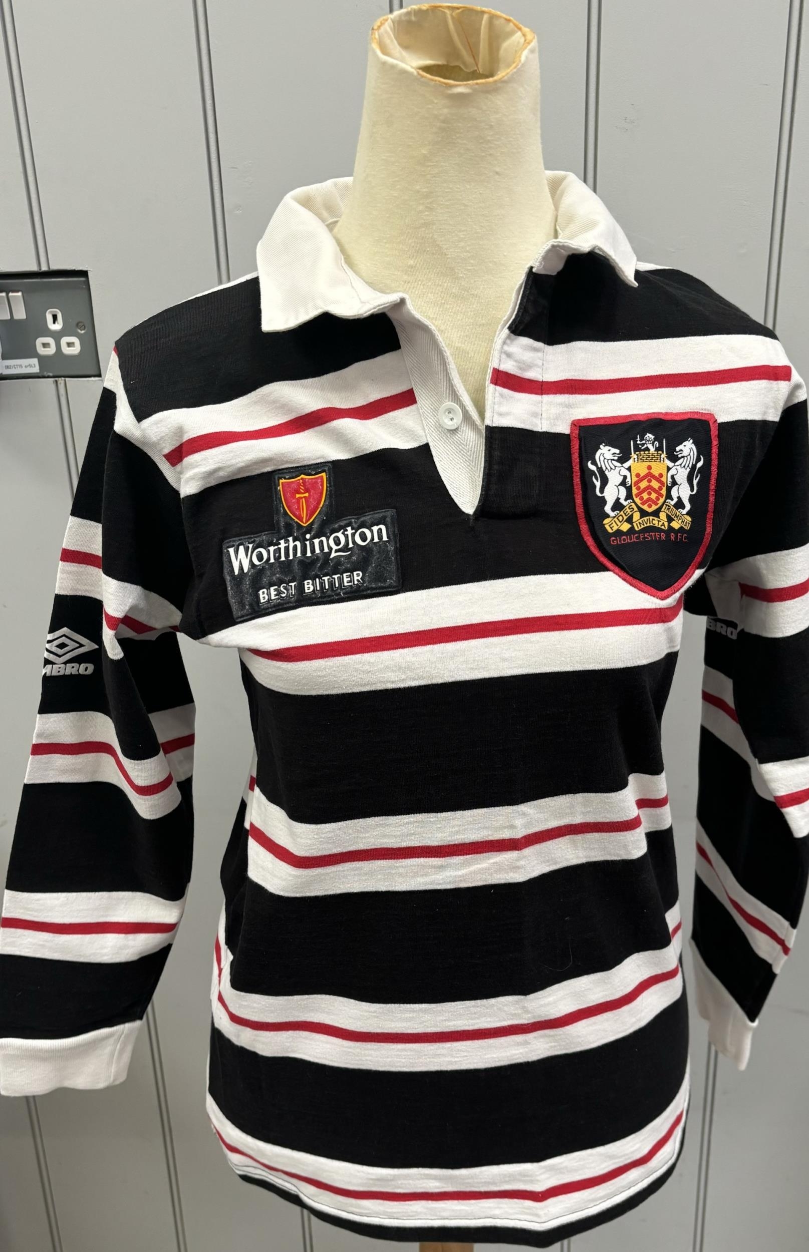 Six Gloucester RFC shirts, together with a pair of Bristol City FC shin pads.