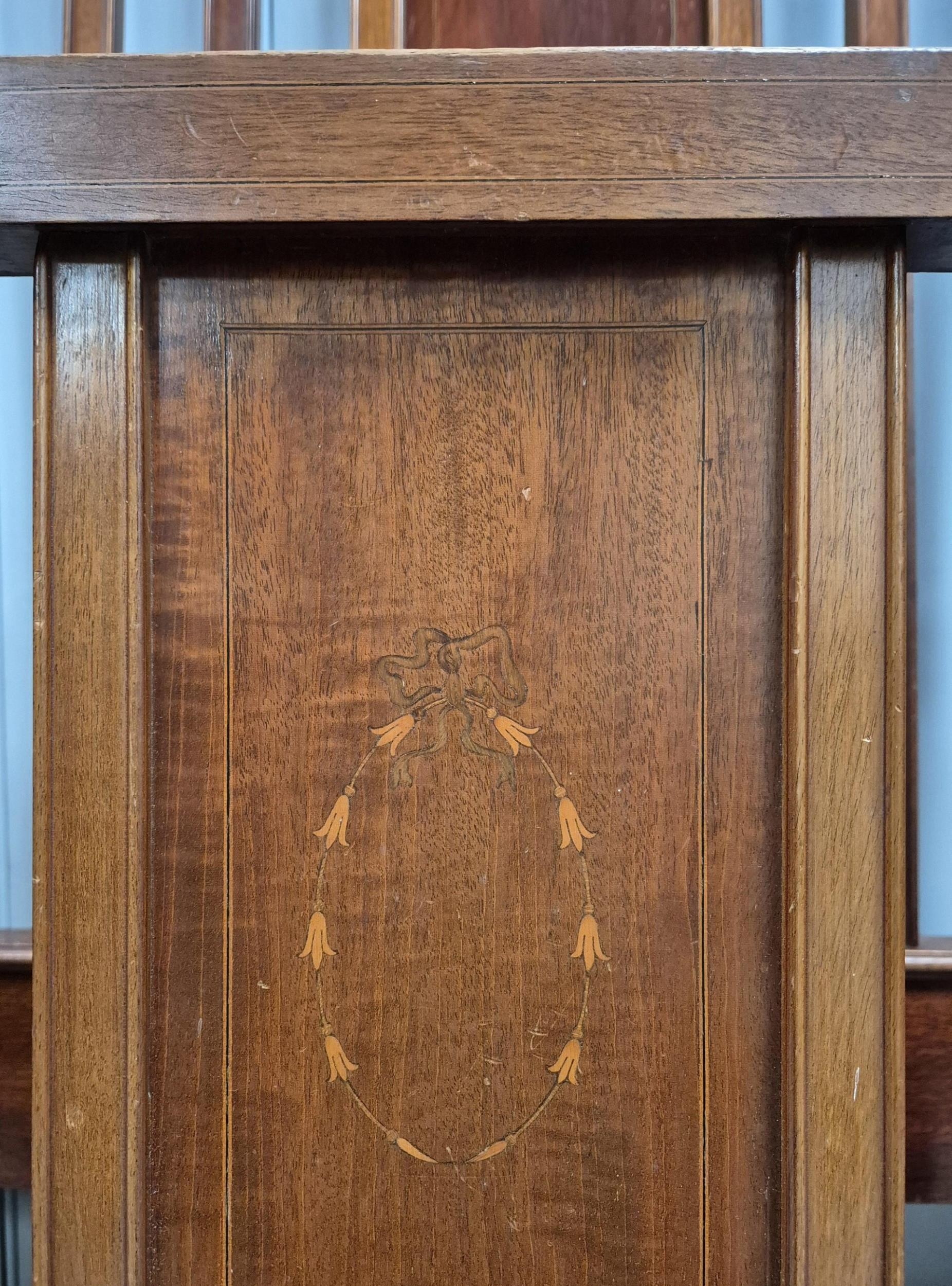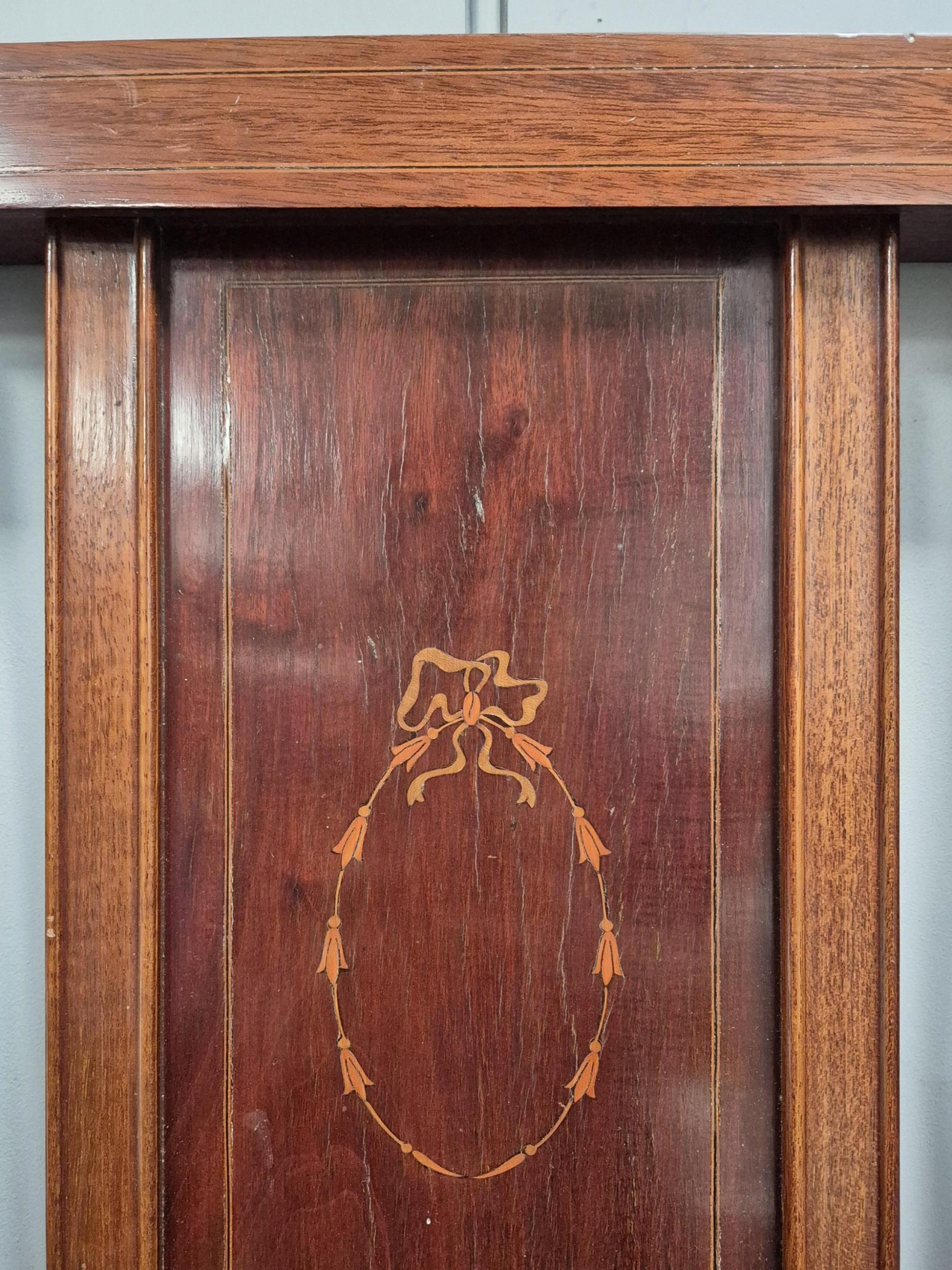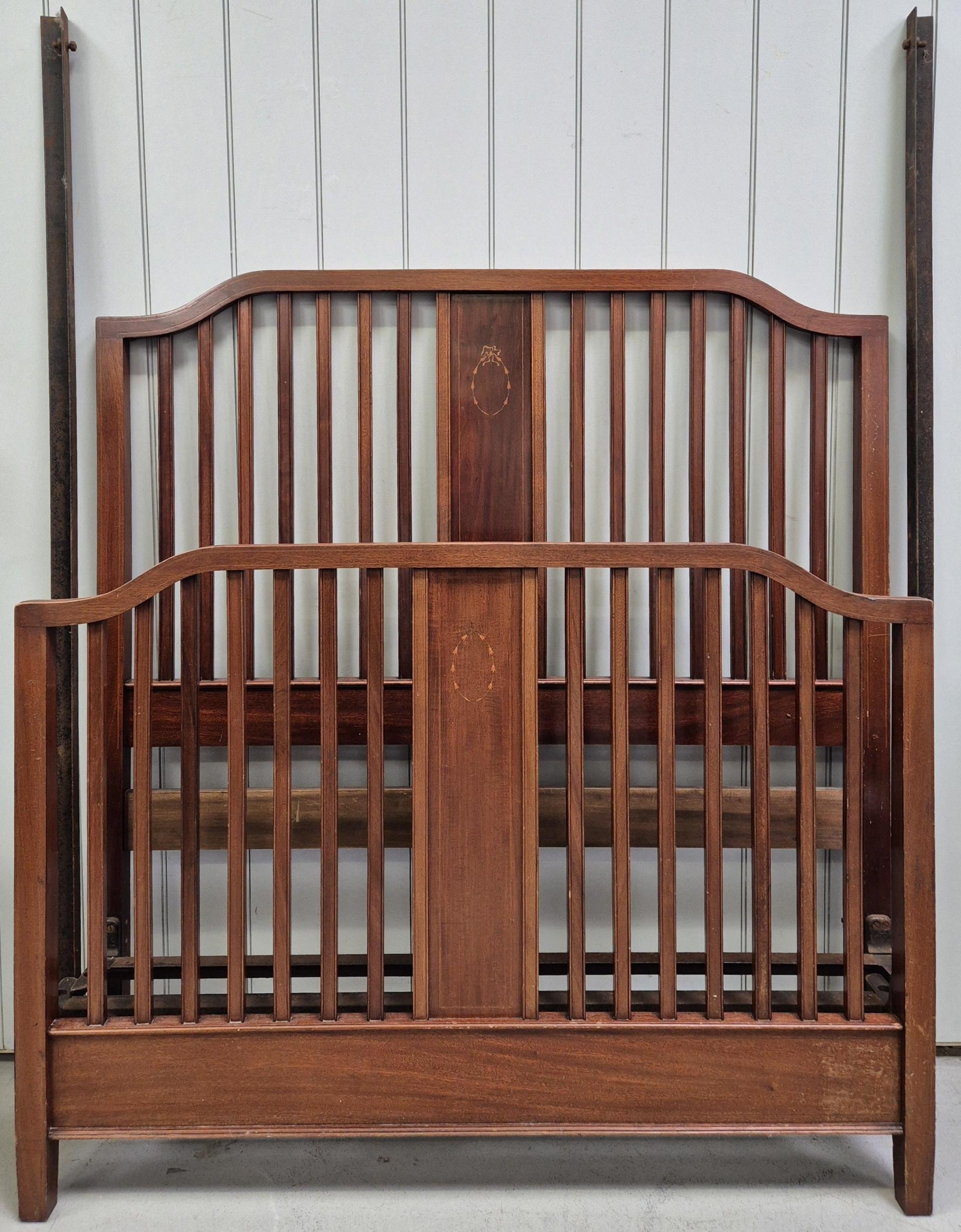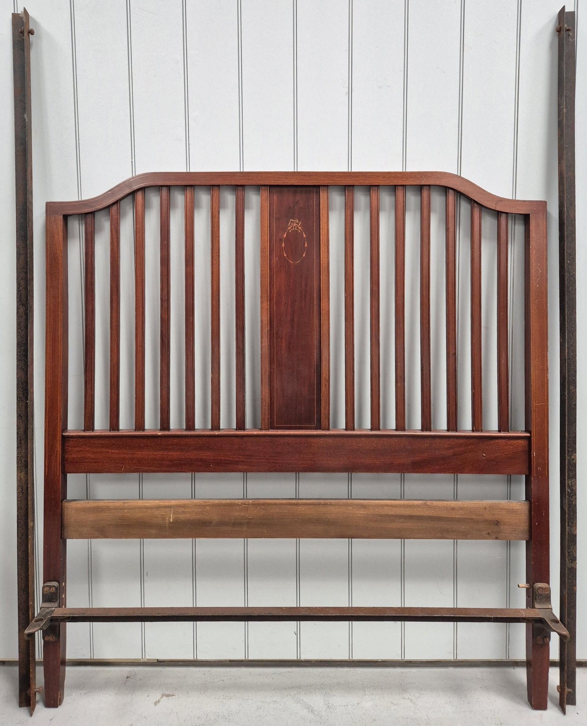 Edwardian Inlaid Bedframe. Complete with irons. Dimensions(cm) Headboard H147, W137, D18. Footboard H101, W137, D18.