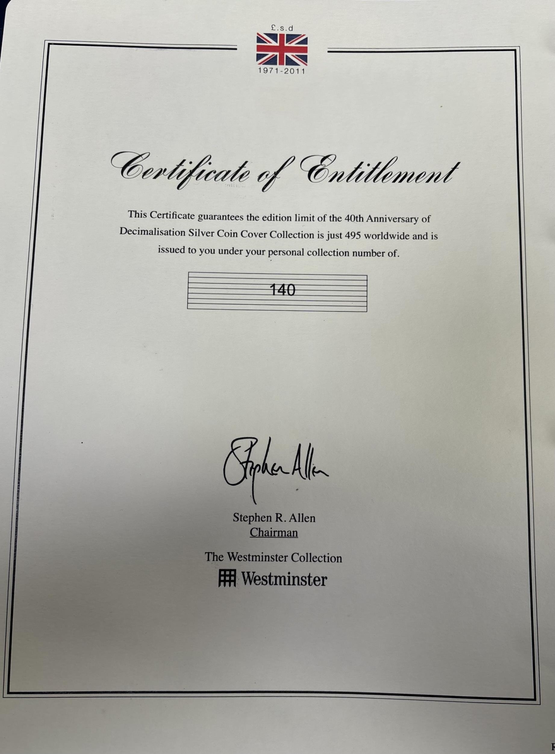 Westminster Mint 40th Anniversary Decimalisation coin cover set. Silver-plated circulated coins.