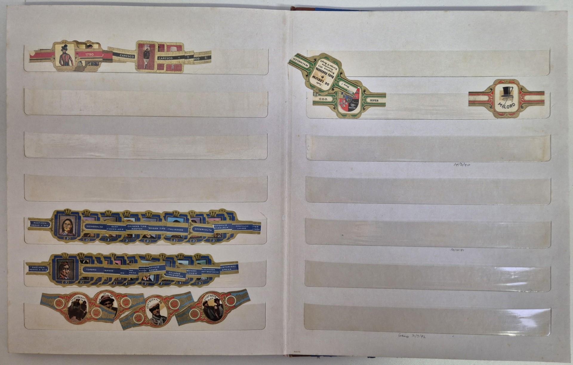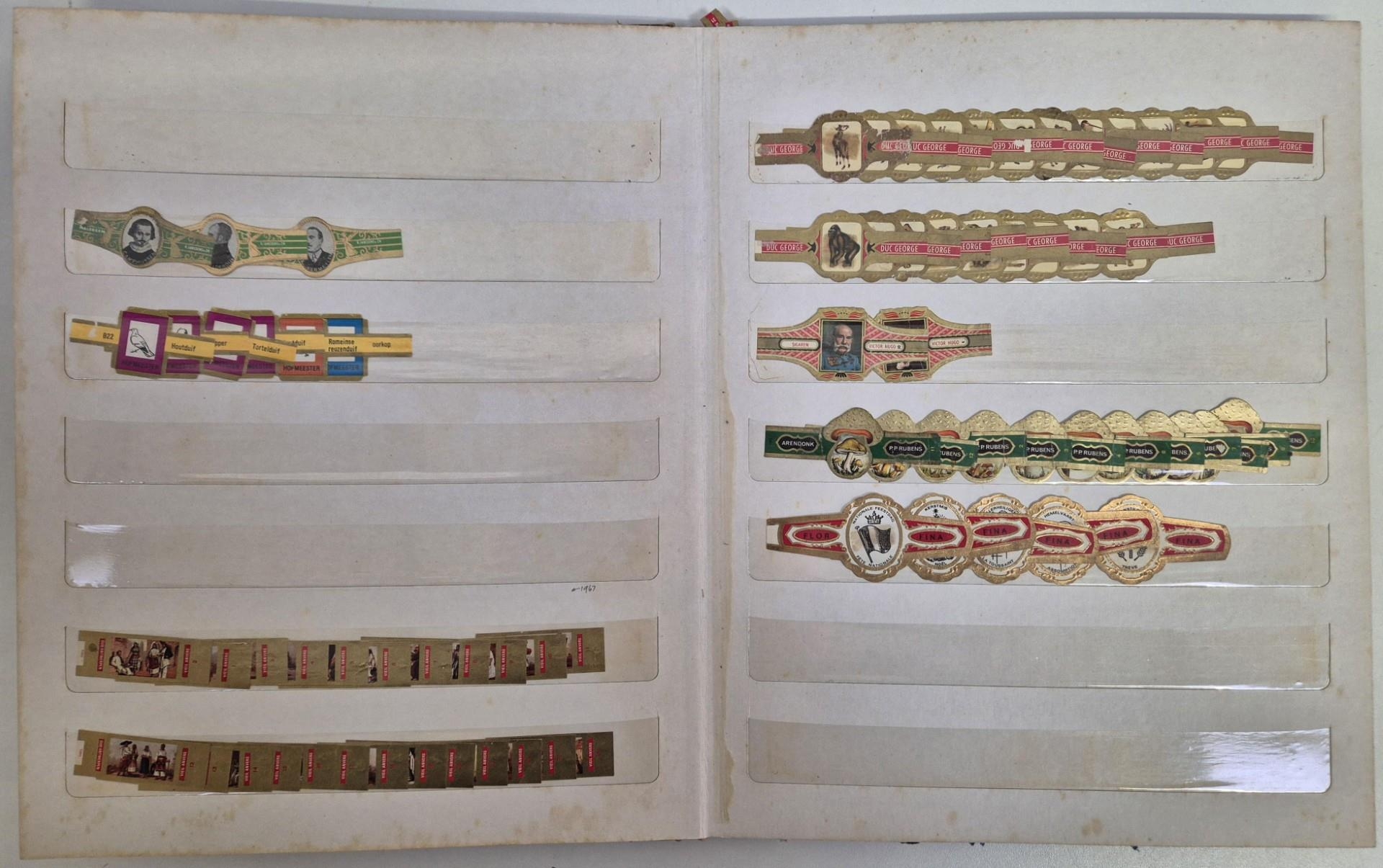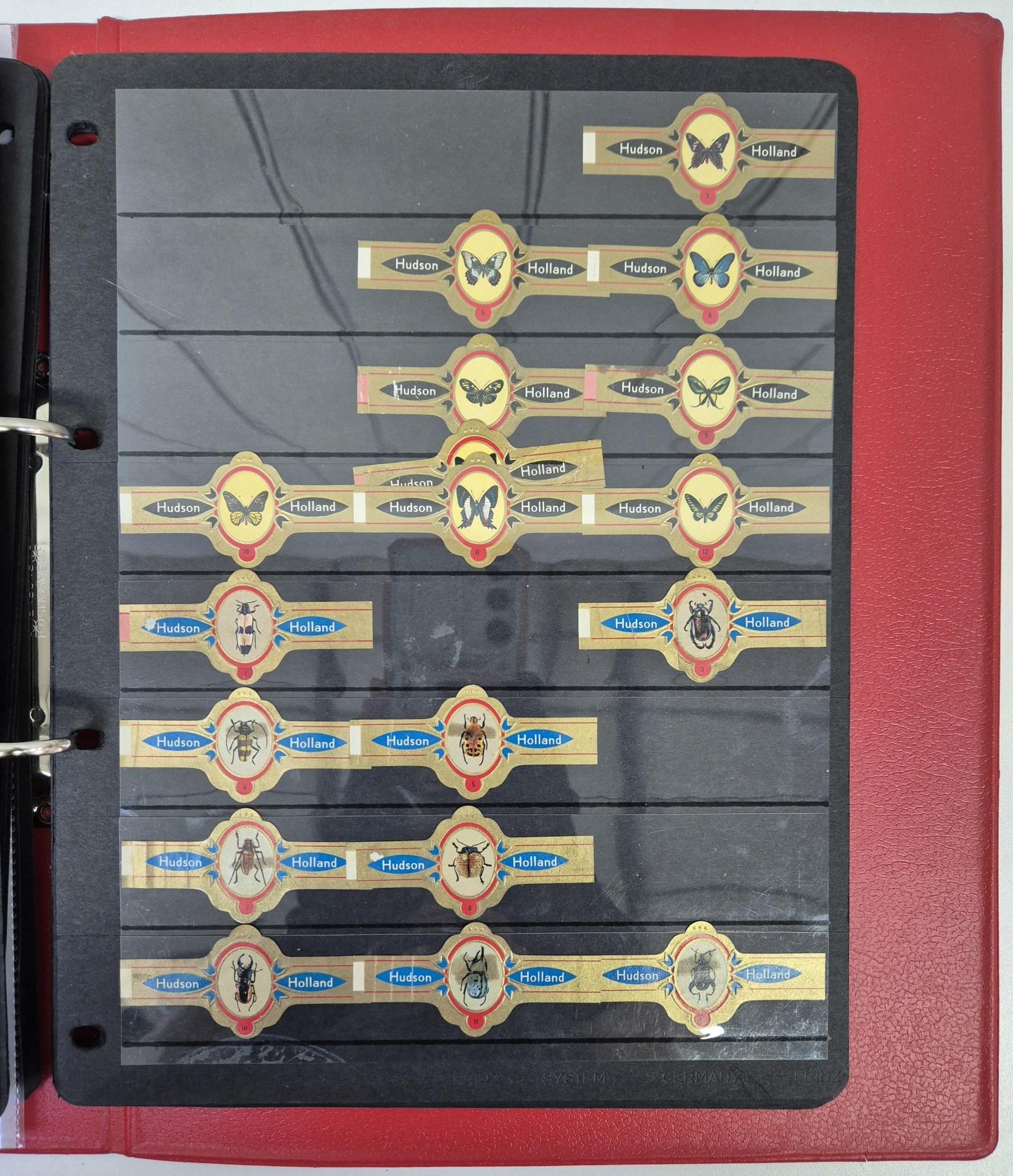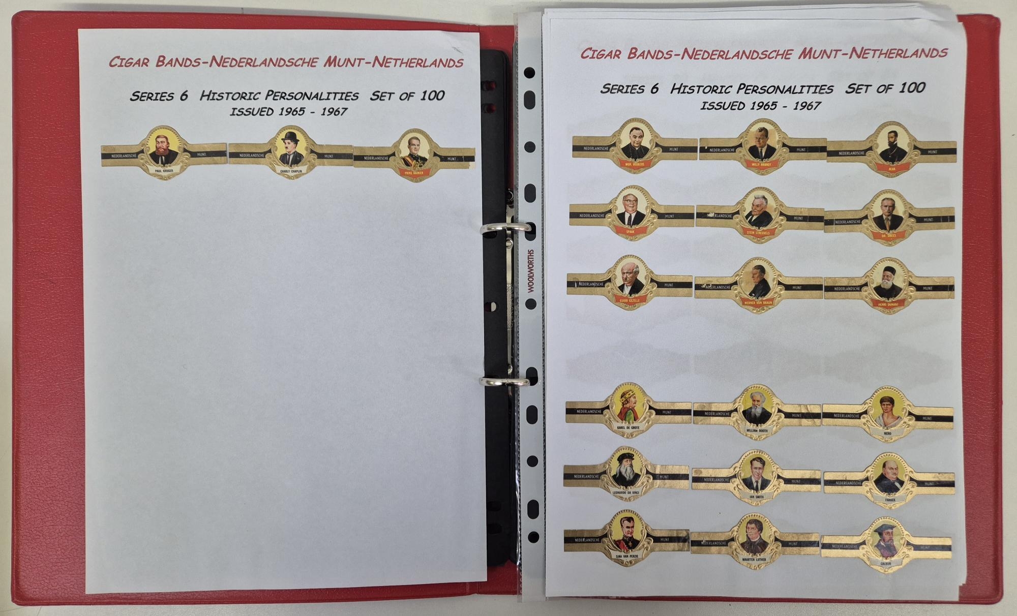 A huge collection of international cigar bands, housed in 4 albums. Approximately 2200 in total. Many full sets, including series 20 Mexico Olympics 1972; series 22 Amsterdam 1975, series 18 Racing Drivers 1971, series 6 Historic personalities 1965-67 (100 bands), series 21 Indians 1975, etc.