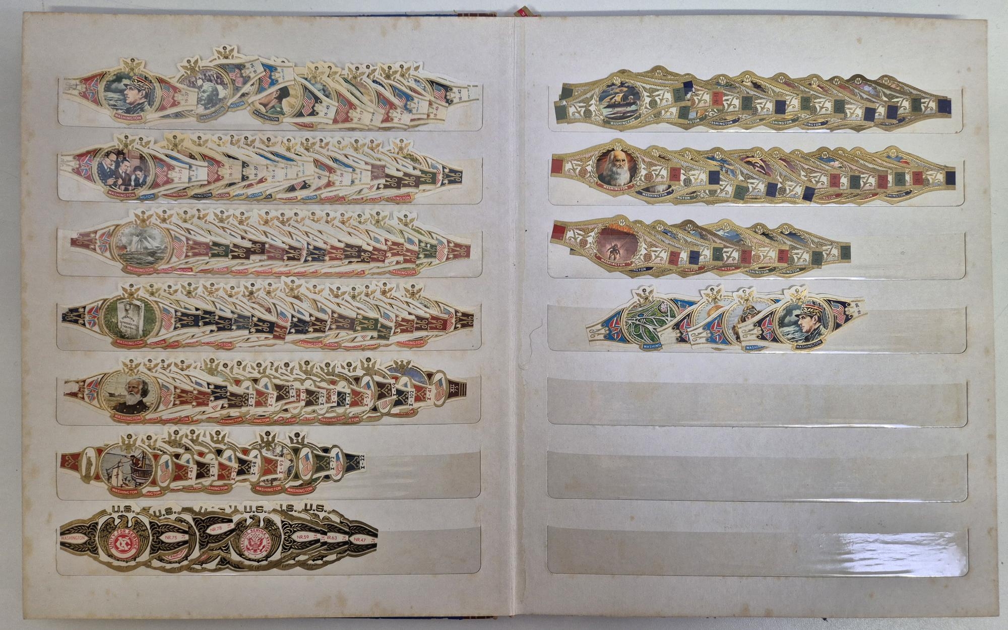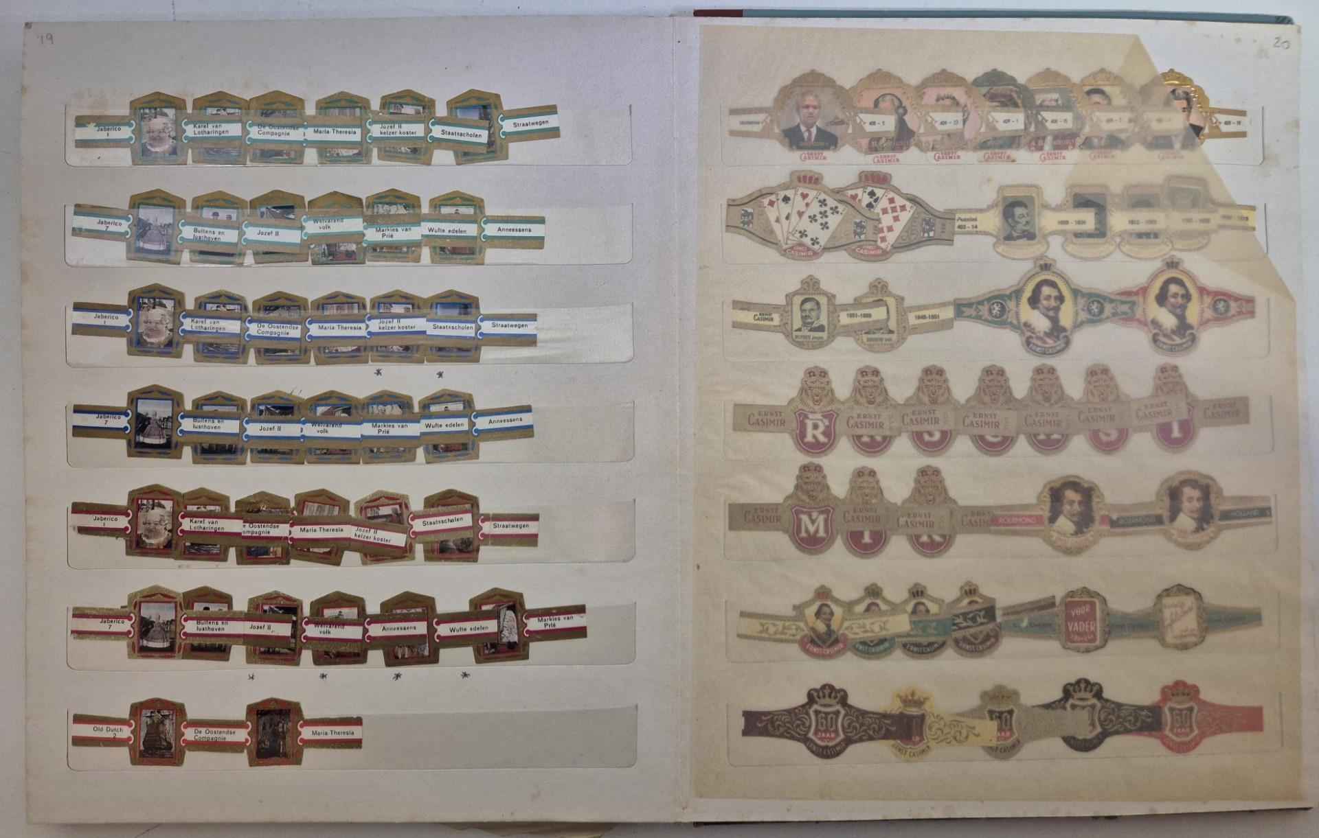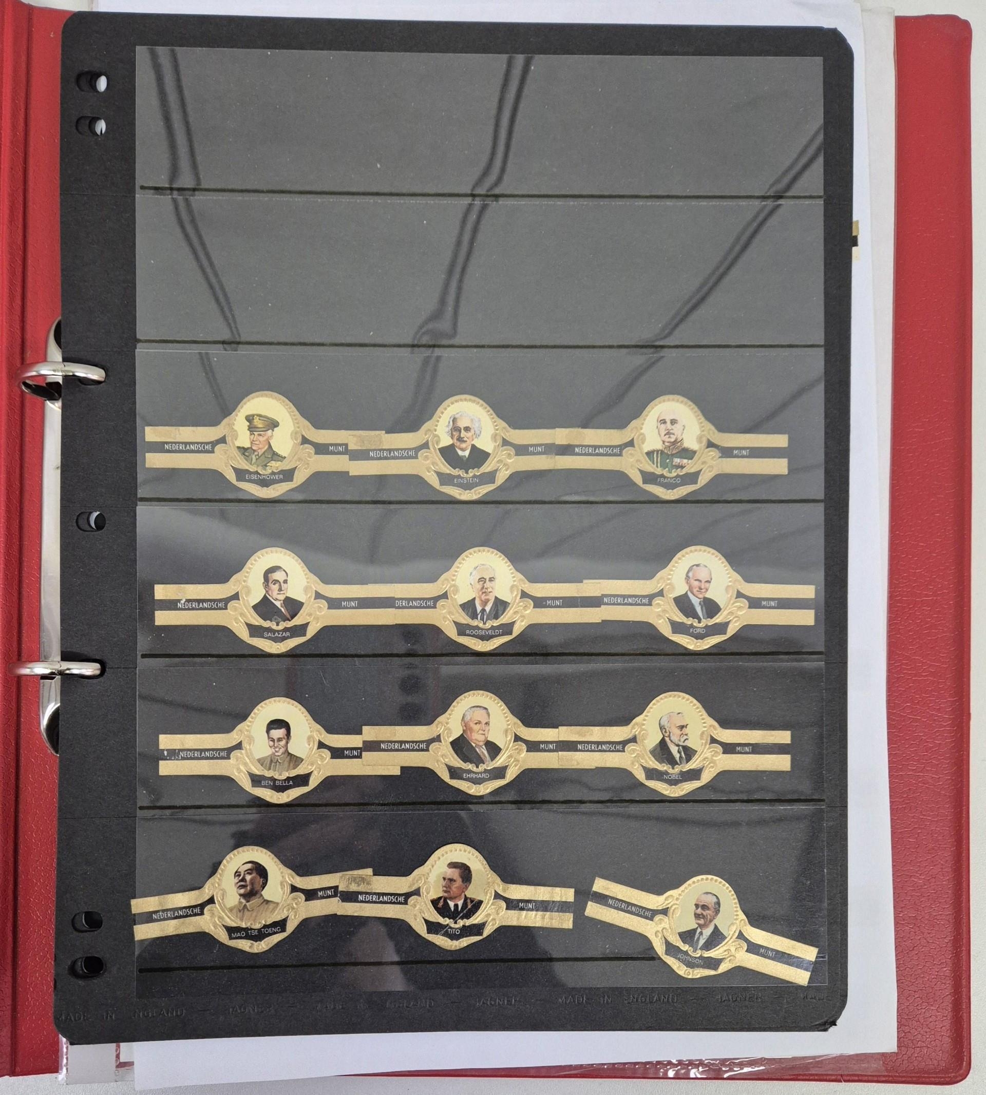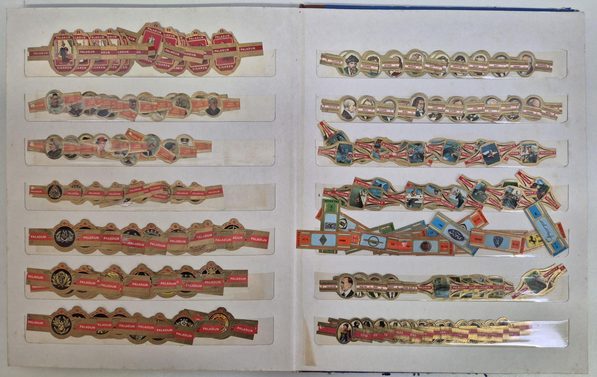A huge collection of international cigar bands, housed in 4 albums. Approximately 2200 in total. Many full sets, including series 20 Mexico Olympics 1972; series 22 Amsterdam 1975, series 18 Racing Drivers 1971, series 6 Historic personalities 1965-67 (100 bands), series 21 Indians 1975, etc.