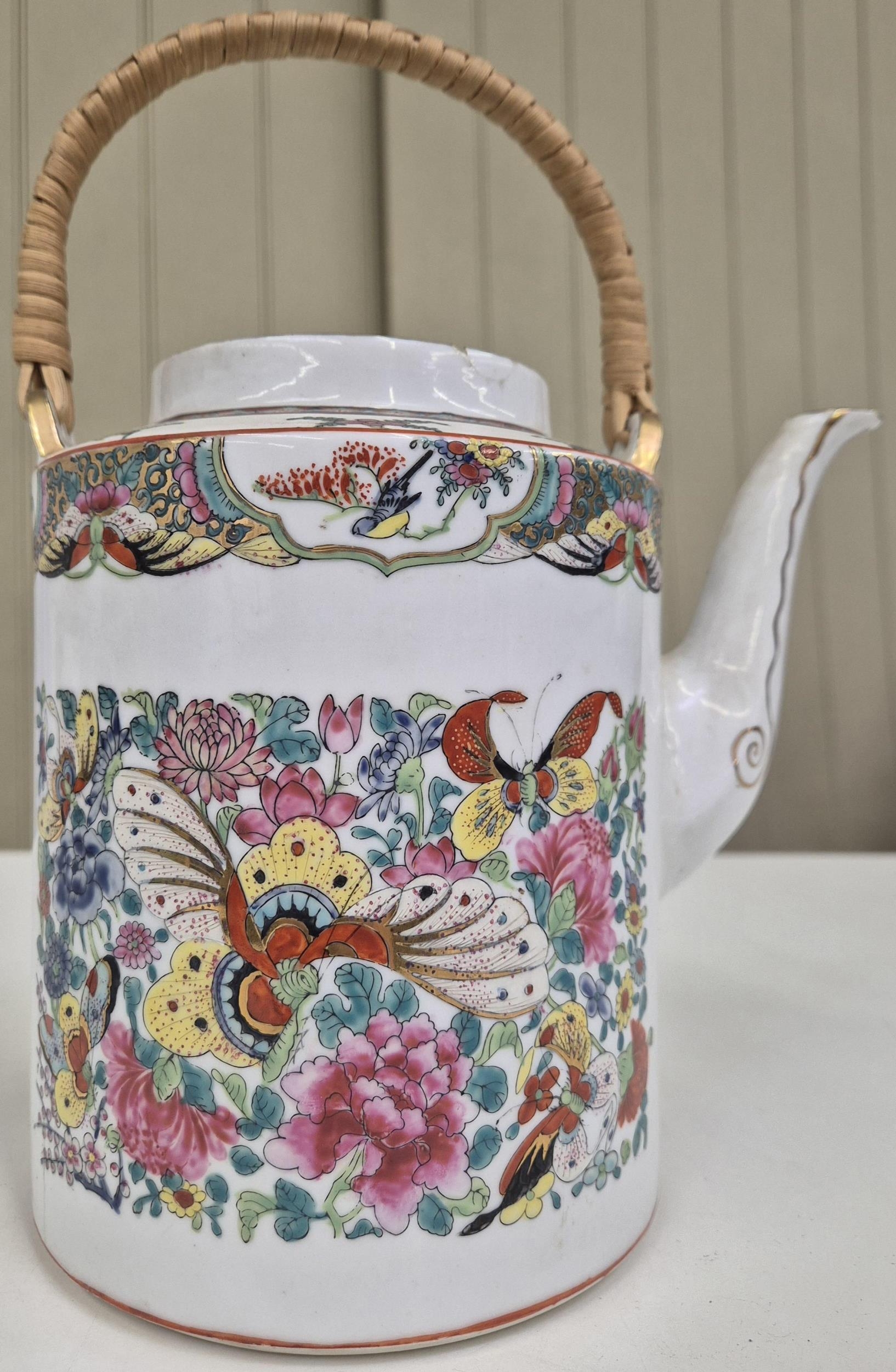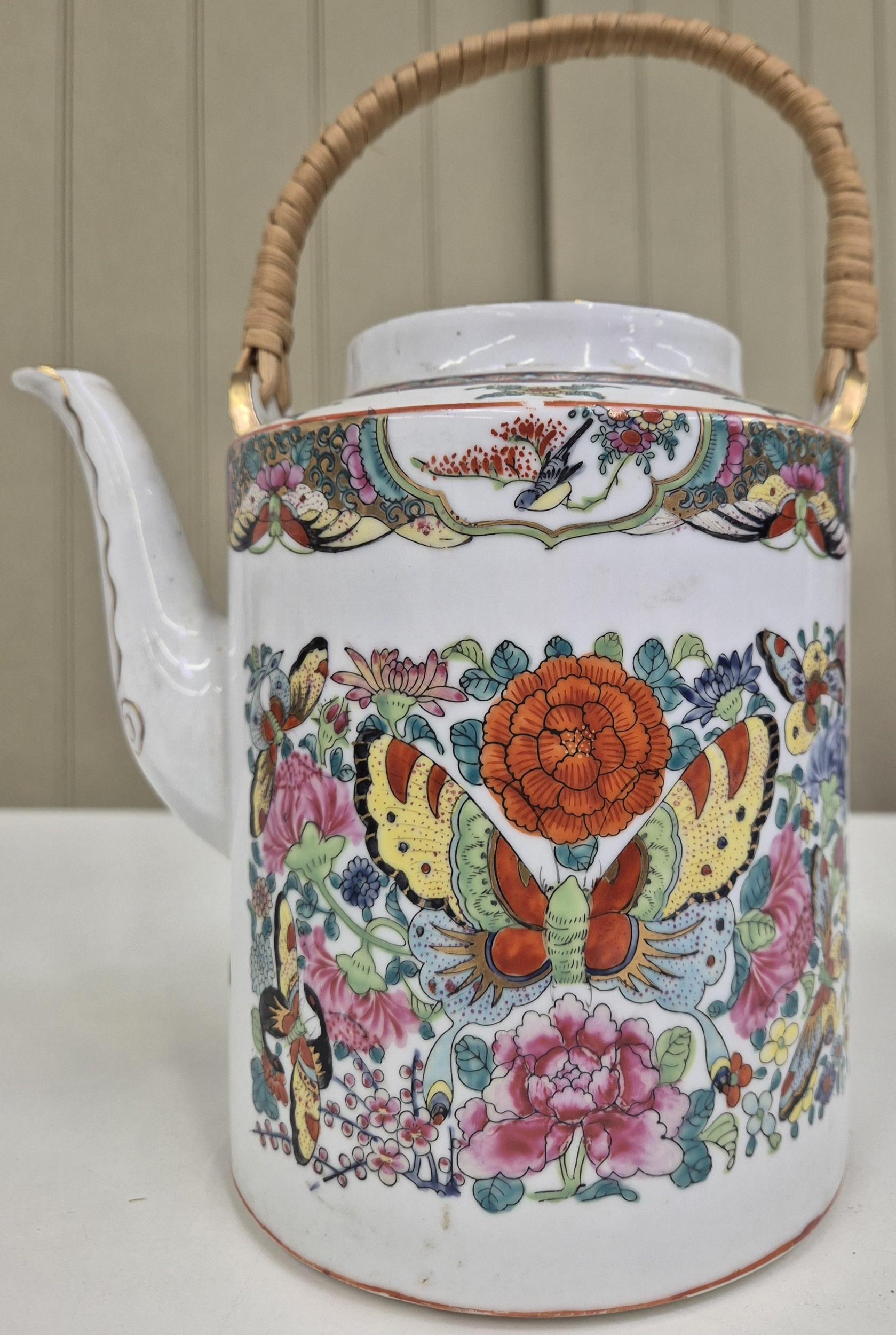 A vintage, vividly decorated, Chinese teapot. Height 26cm.