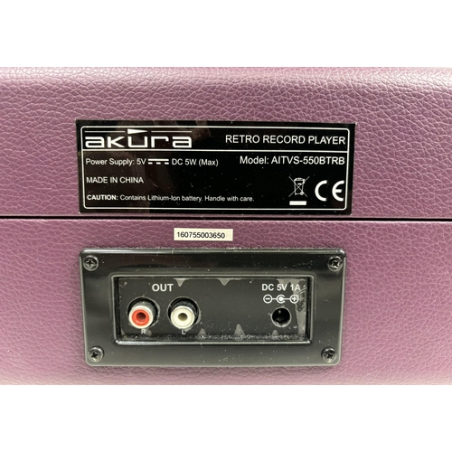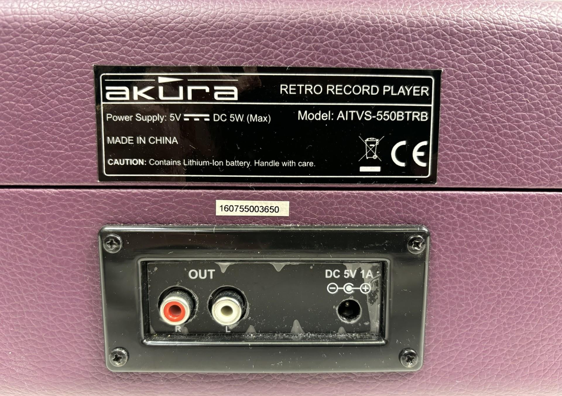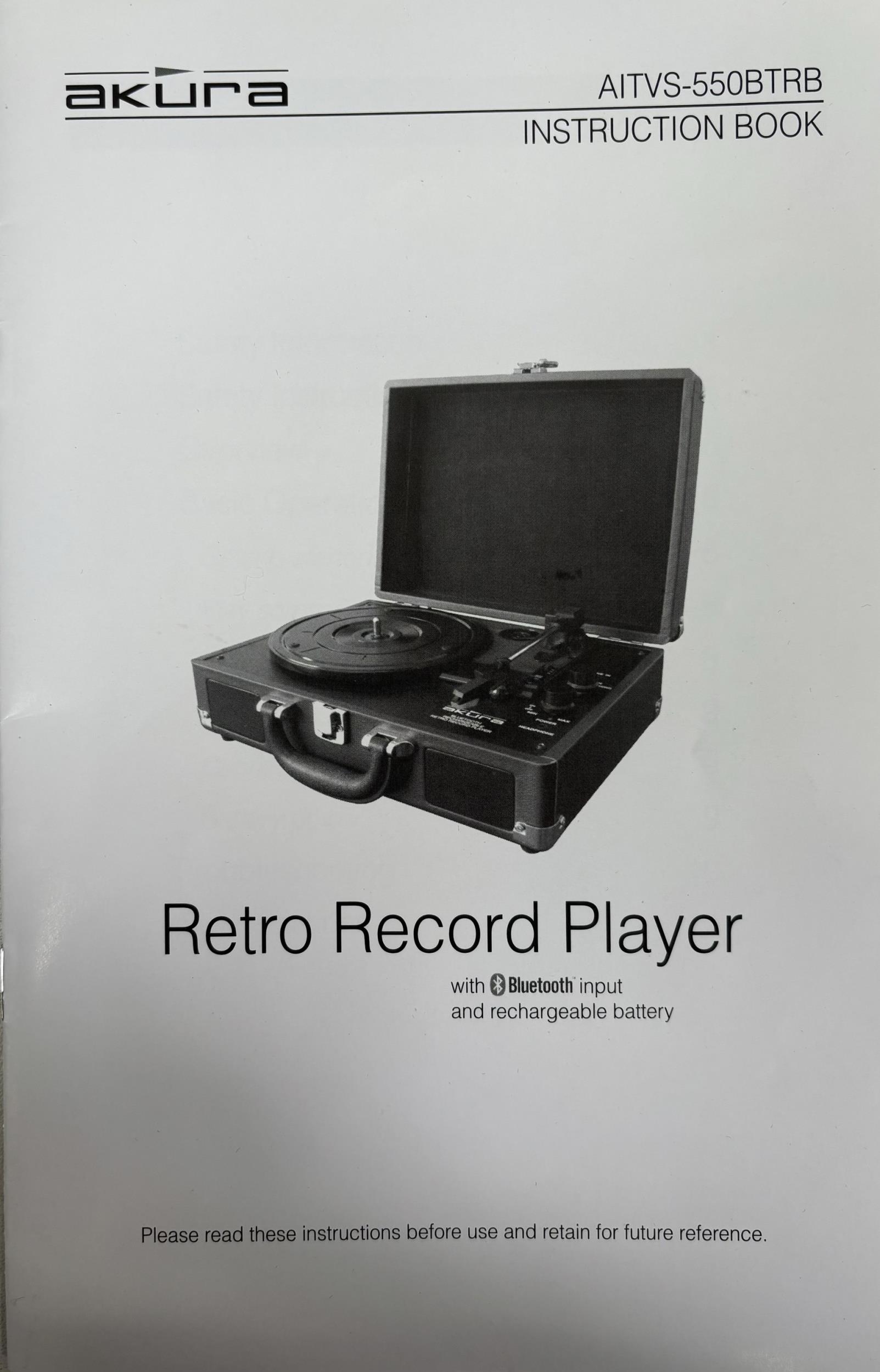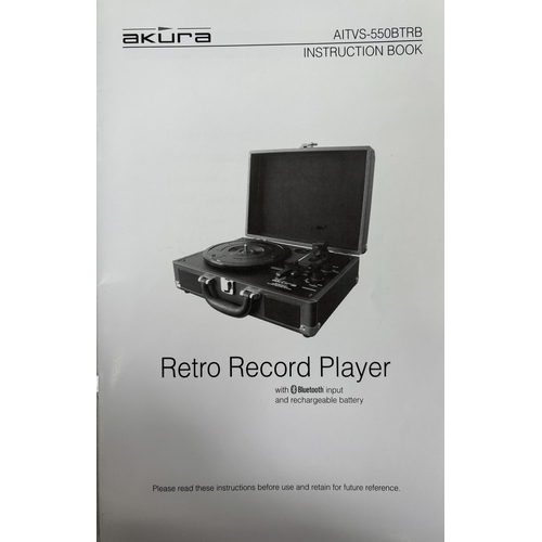 Akura AITVS-550BTRB Portable Record Player. Complete with original manual. Untested.