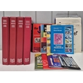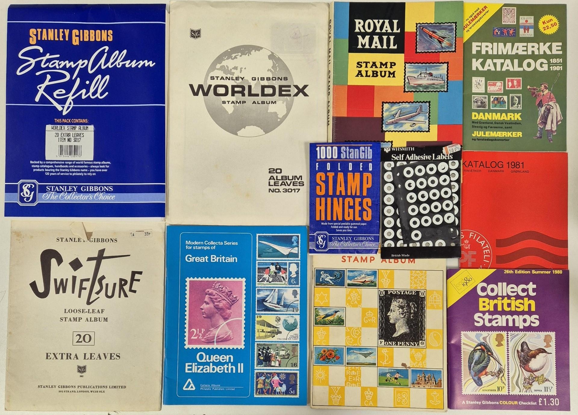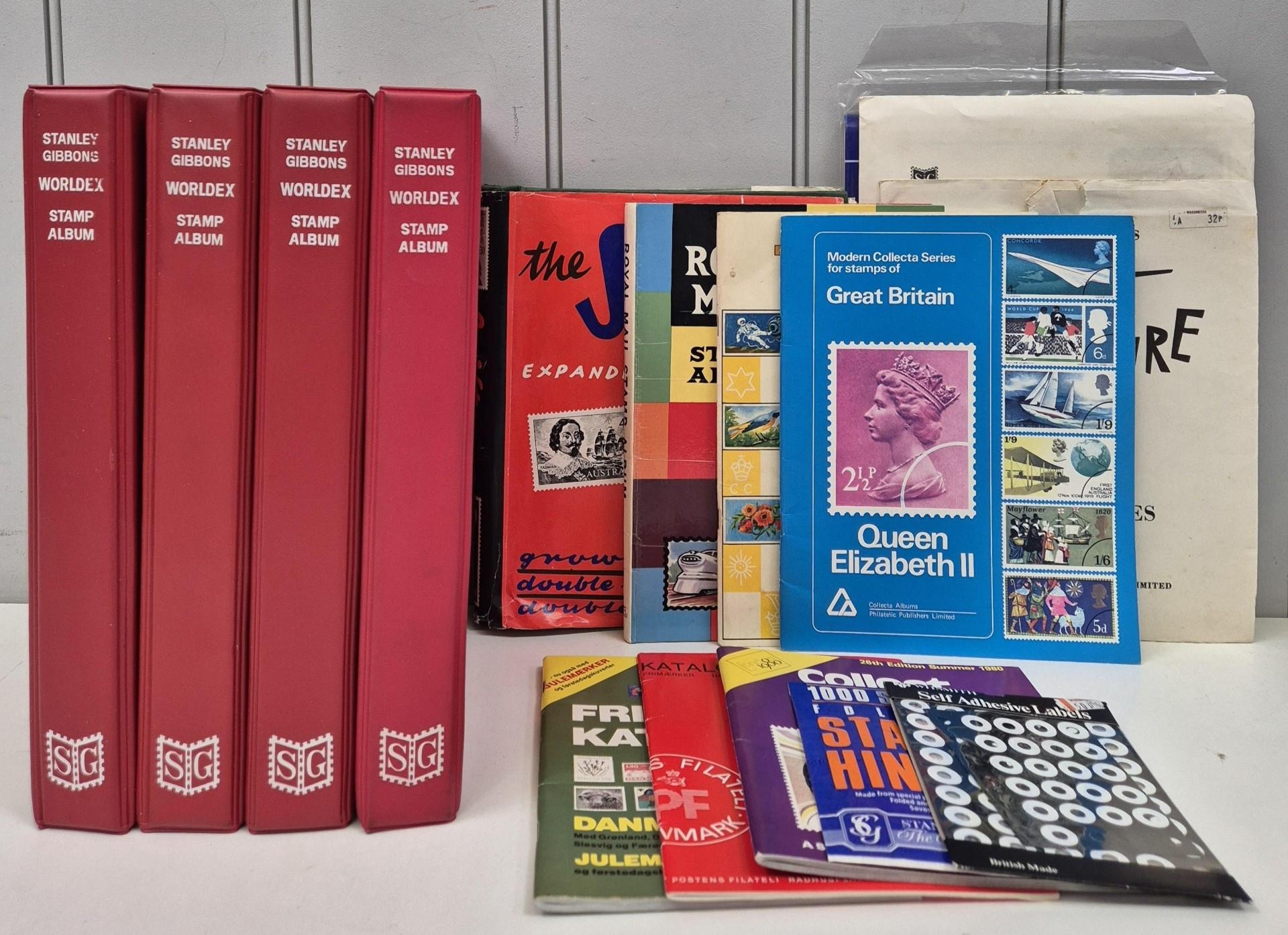 Collection of stamp albums, guides & stationery. To include 5 albums with stamps & 2 empty.