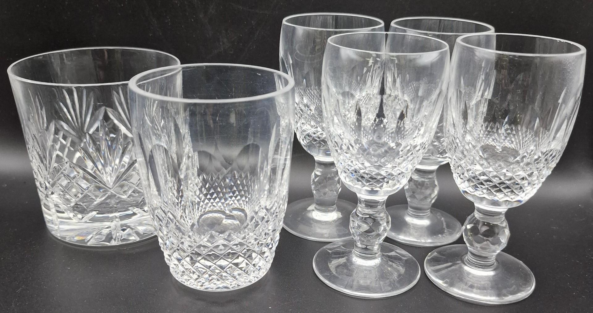 A set of four Waterford Crystal 'Colleen' pattern sherry glasses, together with an Edinburgh Crystal tumbler & another.