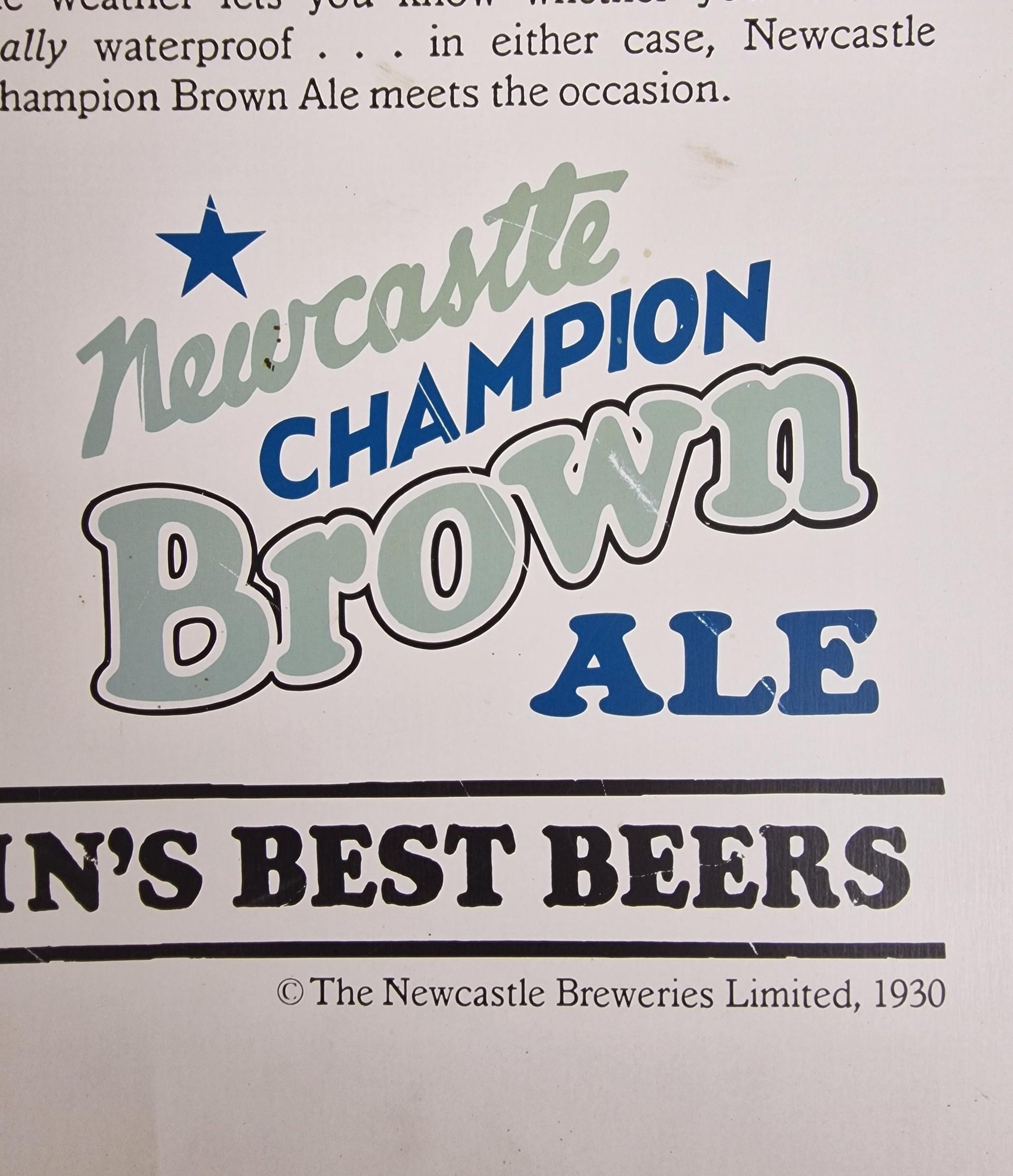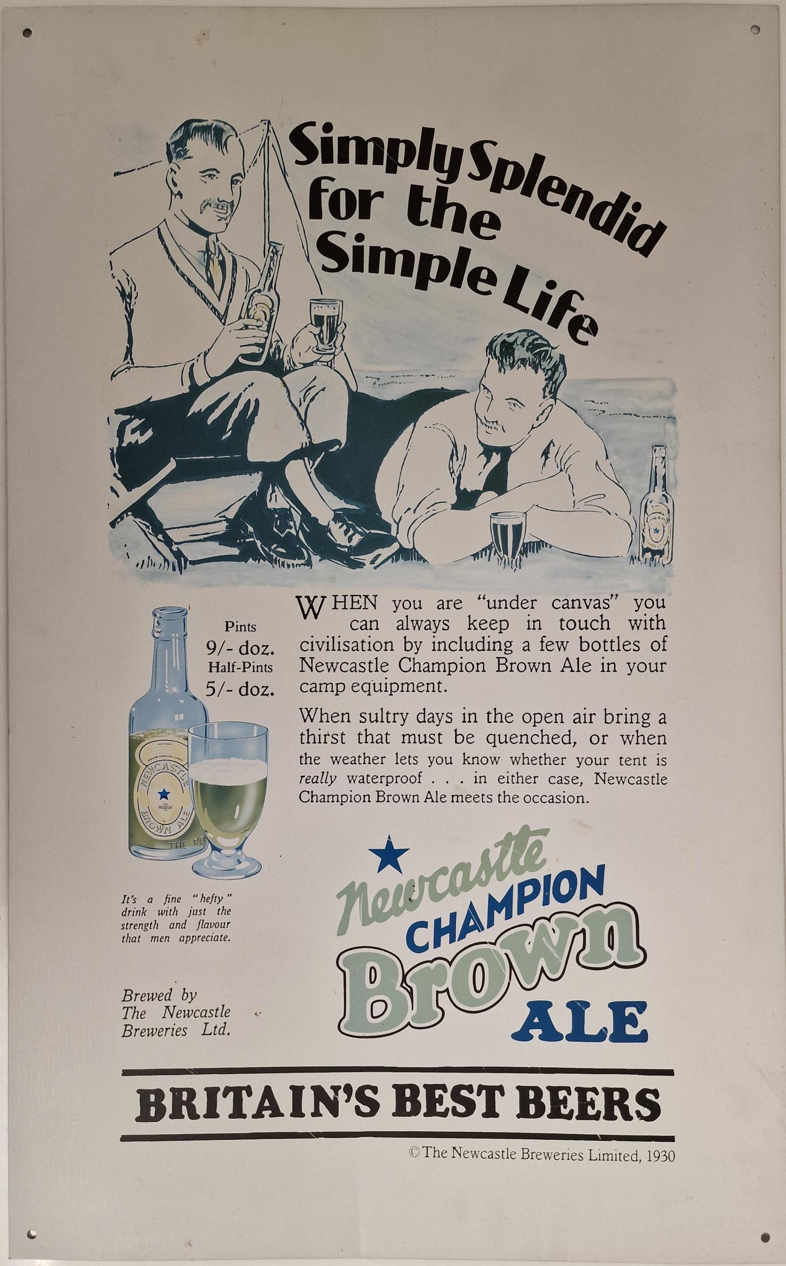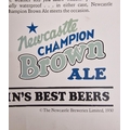 A reproduction, printed-metal 'Newcastle Brown Ale' advertising sign. 61cm x 38cm.